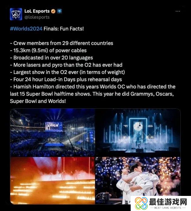 -哈米什・汉密尔顿导演了今年的《英雄联盟》全球总决赛开幕式,他此前执导过过去15届超级碗中场秀,今年他还执导了格莱美奖、奥斯卡奖、超级碗以及全球总决赛的相关活动!