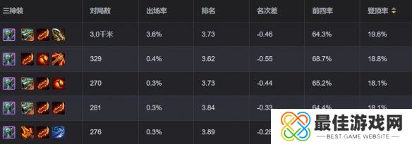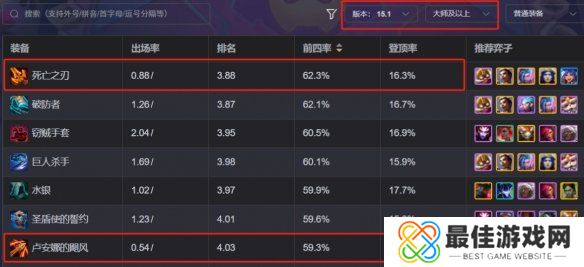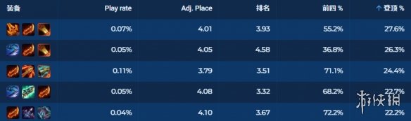 以大师段位以上为例,合成装备中:**剑已经成为前四率最高的装备,飓风的排名也不低。段位越往上宗师、王者微小的数据改动带来的数据差异就越明显,毫无疑问,这次的装备改动对于物理体系的弈子来说是较为明显的提升。