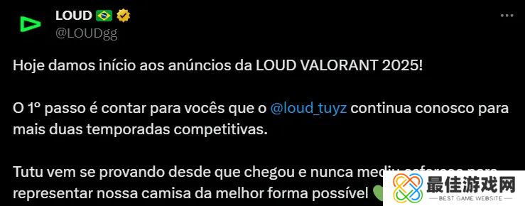 VCT AMER赛区LOUD战队官宣人员变动信息:与tuyz选手续约两年,我们要为2025赛季做准备了!tuyz自来到队伍以来就证明了自己的能力,并且一直不遗余力地以最好的方式代表我们的队伍。