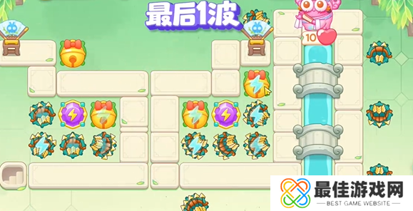 7、最后在左侧建造两个满级铃铛和一个水晶即可过关。