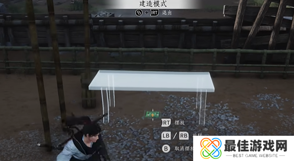 3、切换至建造模式后根据图纸在地基上建造四架椽屋,然后在室内放置至少4件家具。