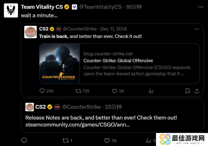 近日CS官方账号更改了背景的封面图,社区普遍认为这意味着开发人员将会移除Vertigo,让Train回归。