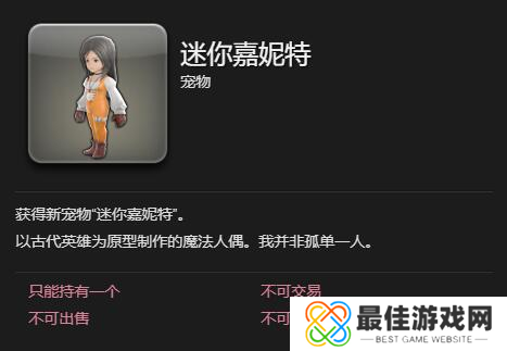 最终幻想14水晶世界迷你嘉妮特宠物怎么获得,迷你版嘉妮特魔法玩偶是以历史传说中的英勇女杰嘉妮特为蓝本精心打造的,下面就跟着小编一起来看看获得方法吧。