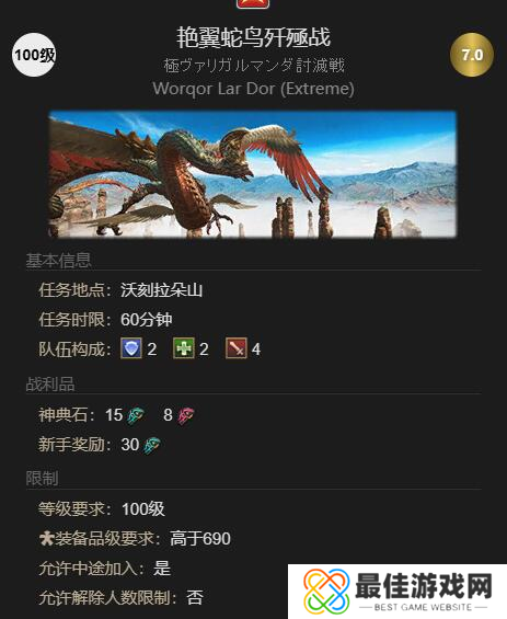 1、成功达成先行任务在图拉尔中心吟诗之人之后,方可参与艳翼蛇鸟歼殛战挑战。