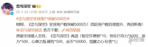 1、时至今日,恋与深空的全球玩家数已突破五千万。