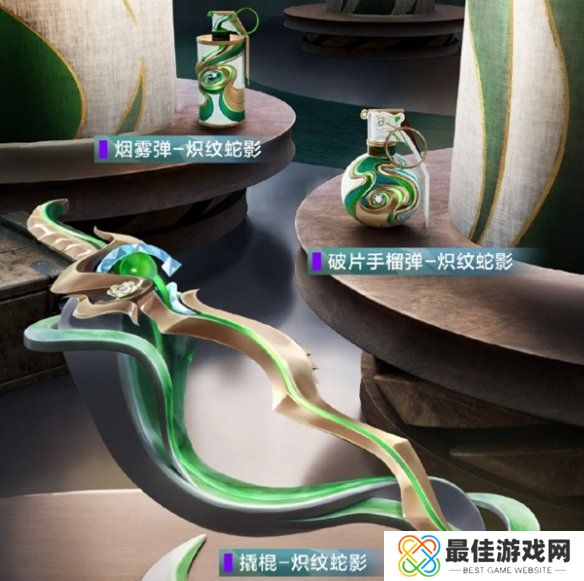 4、奖池内包含炽纹蛇影套装、投掷皮肤自选礼包(破片手榴弹-炽纹蛇影、烟雾弹-炽纹蛇影)以及蛇影币。