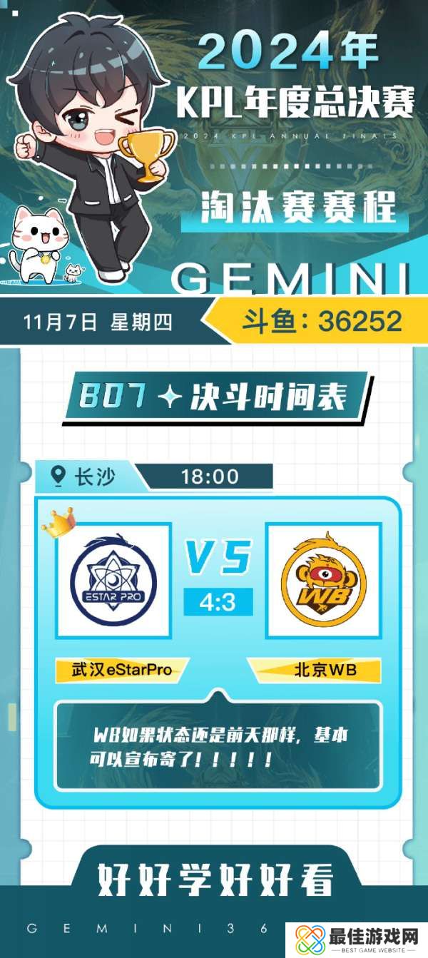 虎扑11月07日讯 狼星或将再次相遇,Gemini预测今日赛果:ES 4-3 WB!原文如下:今日预测!状态真的太重要啦