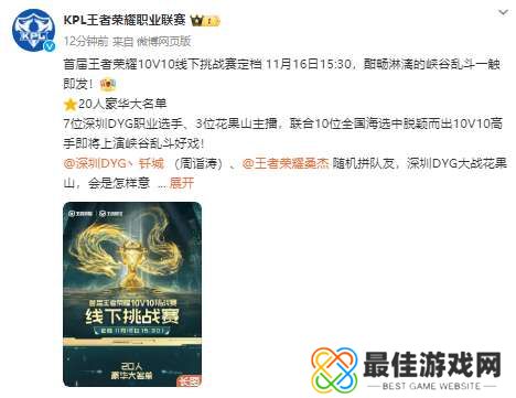 虎扑11月15日讯 首届10V10线下挑战赛定档:钎城/桑杰领衔20人豪华大名单!