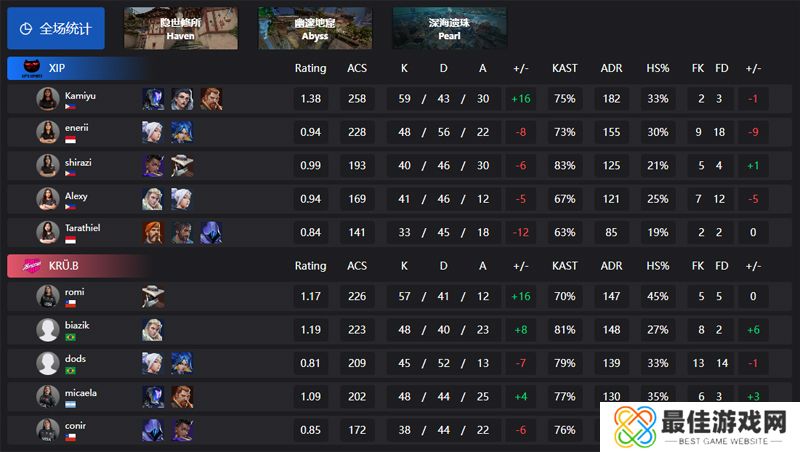 图一隐世修所,XIP 6:13 KRU,图二幽邃地窟,XIP 13:10 KRU,图三深海明珠,XIP 13:9 KRU。来自菲律宾的Kamiyu选手拿到了全场最高的59总击杀,也是XIP逆转取胜的关键。