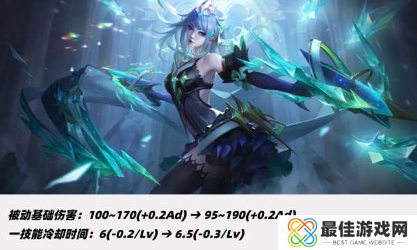 一技能冷却时间从6-5秒调整为6.5-5秒,即一级时增加了0.5秒、满级不变,改动思路就是削弱前期、加强后期。