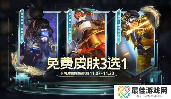 活动时间11月7日-11月20日,完成每日登陆、对局和观看KPL年度总决赛任务,最快3天就可以兑换一款皮肤。