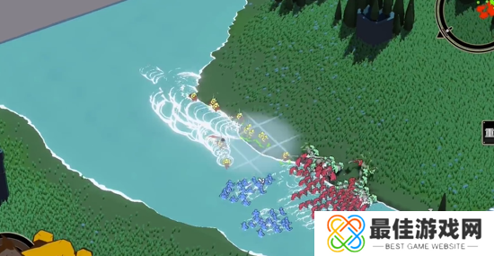 3、再操控部队前往河中,尝试截断敌人的蓝色的部队。