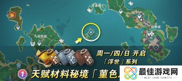 1、「浮世」系列天赋材料可在稻妻的「菫色之庭」获取,该秘境每周一、周四、周日限时开放。