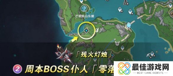 2、周本材料「残火灯烛」由周常BOSS「仆人」掉落,位于枫丹的「零落丘墟」秘境,每周一刷新。