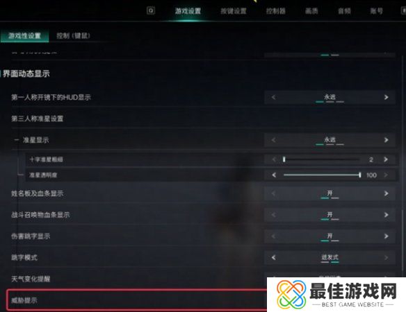 4、进入后,找到威胁显示,点击右侧的箭头即可在2D和3D图标之间切换。