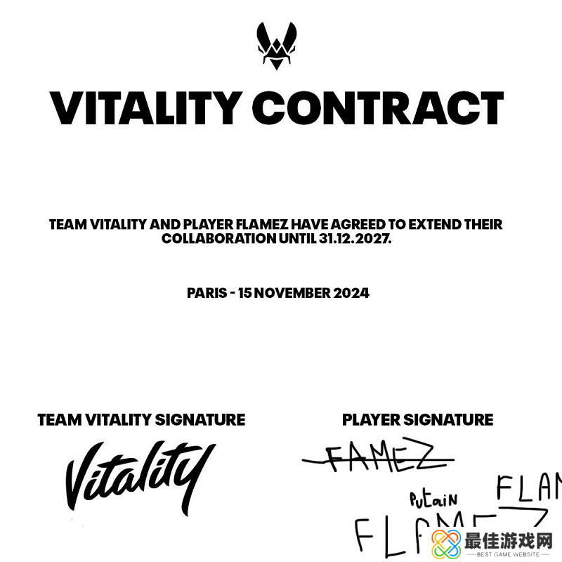 Vitality社媒发布动态:队伍与flameZ的合同已签订至2027年12月31日。