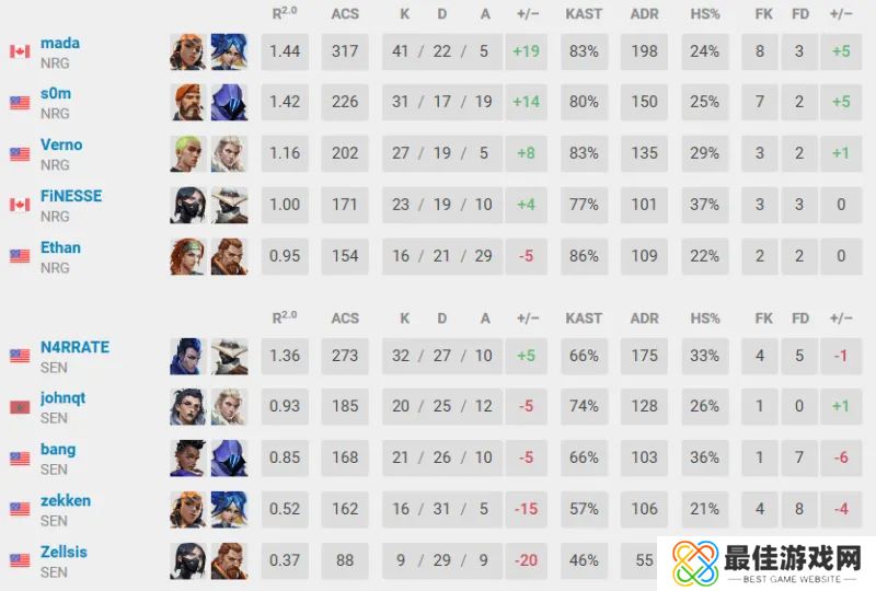 SEN方面则由新援N4RRATE砍下最高rating和平均战斗评分。