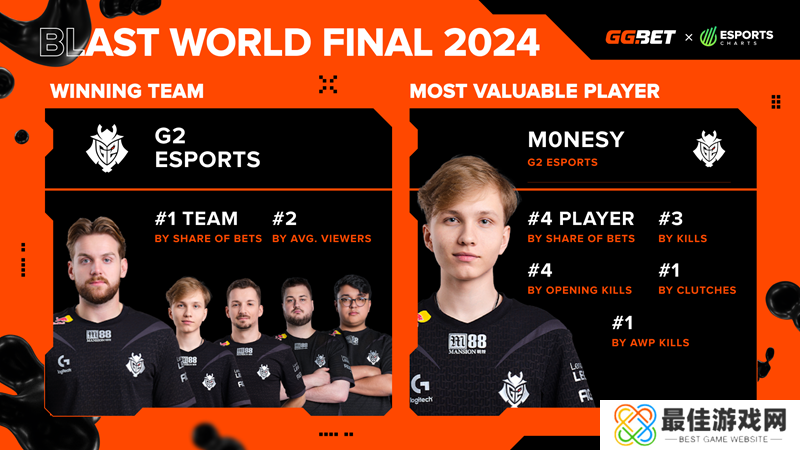 G2战队的m0NESY被评为本次赛事的MVP,他的比赛数据也证明了这一点。在整个赛事的总击杀数方面,他排名第三,在开局首杀方面排名第四。除了回合前期发挥出色之外,他还成功拿到了最多残局,并保持着赛事中最多AWP击杀的记录。