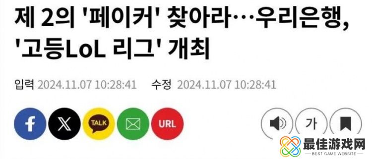 直播吧11月7日讯 据韩媒报道,友利银行举办“高等LOL联赛”,旨在发掘第二个“Faker”。