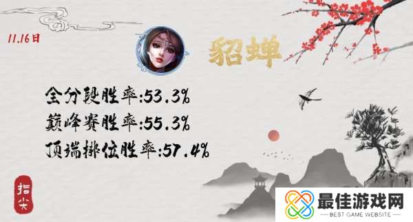 大家好我是指尖,本文来跟大家聊几个英雄,看看是否有超出你的预料呢?11月15日貂蝉进行了一次调整,官方口径是平衡,非貂蝉玩家觉得是加强,貂蝉玩家一口咬定是削弱,数据出来后到底是削弱还是加强,已经不需要