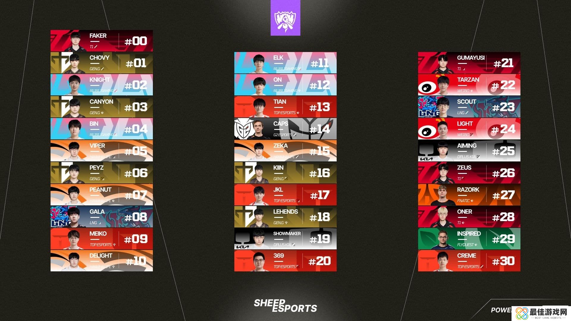 直播吧11月8日讯 近日,外媒Sheepesports发文为当初公布的世界赛Top30选手没有Faker致歉,原文如下。