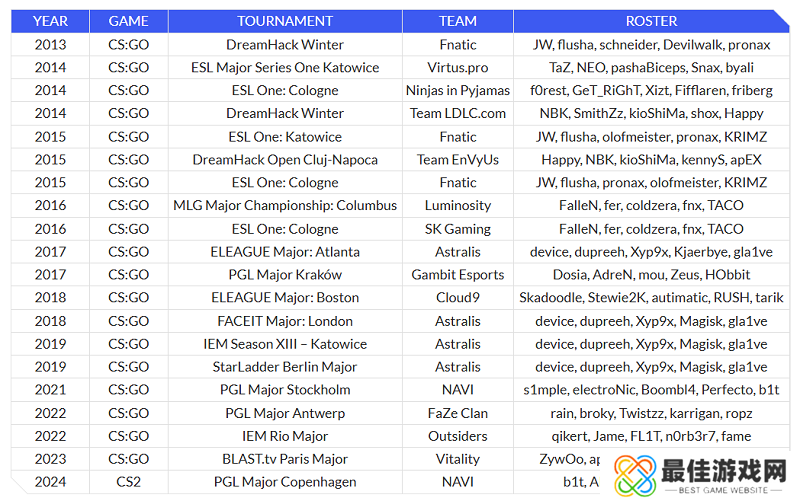 CS:GO和CS新版本所有的Major赛事及冠军阵容