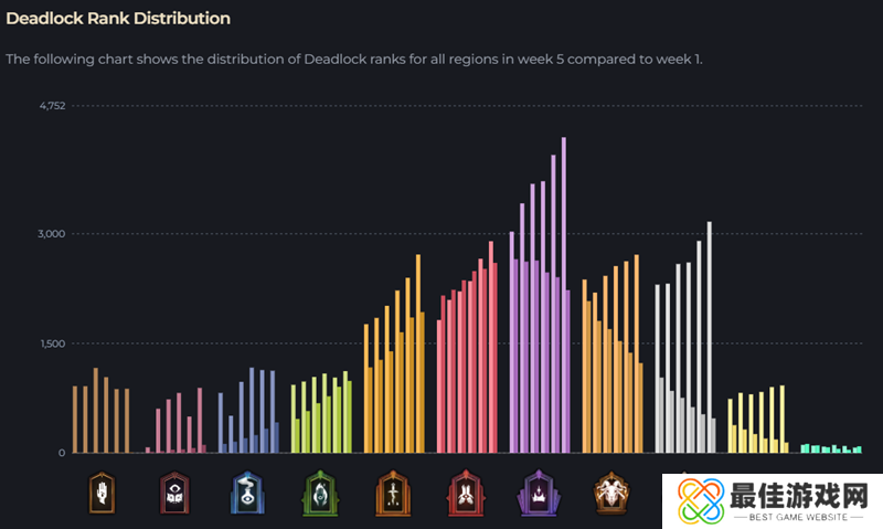 《DeadLock》第五周的排位赛已经结算并且公布结果啦,本周排位赛游玩局数大于七把的朋友登陆游戏就可以看到自己的段位啦,不知道有没有上分或者掉分呢?本周排位人数持续下滑,已经跌至60000左右,相比