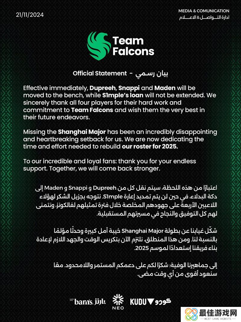 这则声明意味着Falcons新一轮阵容重建的开始,他们在去年年底下放四名选手,围绕ENCE核心选手Snappi、