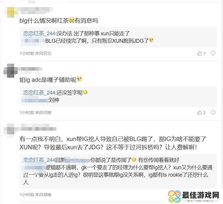 直播吧11月22日讯 LPL转会期正在进行,近日有传闻称BLG新赛季与Xun解约,更有传闻称Xun是因为帮iG挖人才导致的被BLG解约。