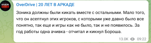 “zonic应该跟其他人一起被踢出阵容,他不仅接受了这些从一开始就看得到结局的选手,还一直没有任何改观,成绩平平。在过去一年的工作中,他唯一取得的成就就是把BOROS踢出了阵容。”